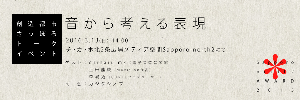 2016/3/13(日)・創造都市さっぽろトークイベント「音から考える表現」開催のお知らせ