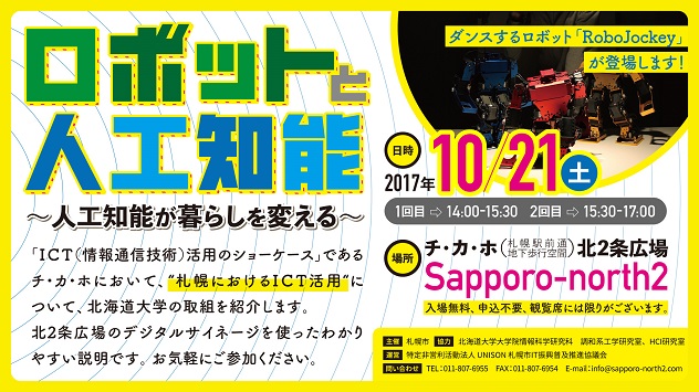 チ・カ・ホ北2条広場メディア空間"Sapporo-north2"では10/21(土)に、"札幌市におけるICT活用"をテーマにICT活用に関する啓発イベントを開催します。