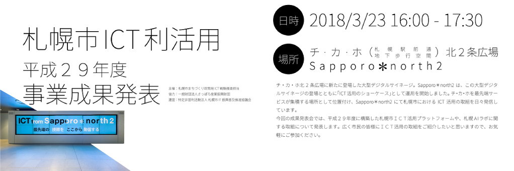 2018/3/23(金)・ICT活用啓発イベント「札幌市ICT利活用 平成29年度事業成果発表」開催のお知らせ