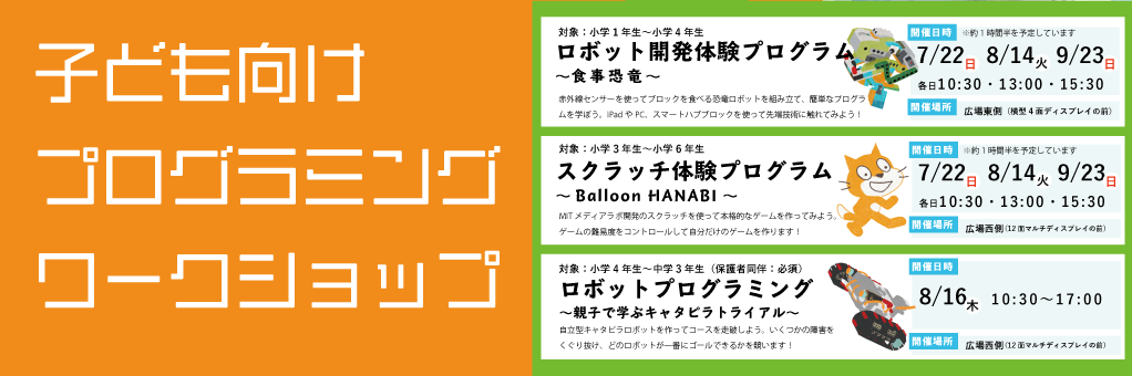チ・カ・ホ(札幌駅前通地下歩行空間)北2条広場"Sapporo*north2"では7/22(日)に、ICT(情報通信技術) 活用を促進するため、プログラミングや電子工作等を行う子ども向けワークショップを開催します。