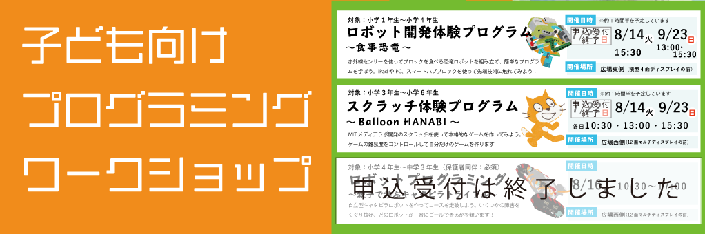 チ・カ・ホ(札幌駅前通地下歩行空間)北2条広場"Sapporo*north2"では2018年8月14日(火)に、ICT(情報通信技術) 活用を促進するため、プログラミングや電子工作等を行う子ども向けワークショップを開催します。