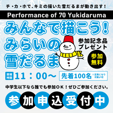 イベントでは、中学生以下のお子さんに、「みらいの雪だるま」をテーマに、雪だるまの絵を描いてもらいます。