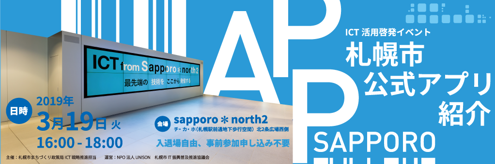 2019/3/19(火)・ICT活用啓発イベント「札幌市公式アプリ紹介」開催のお知らせ
